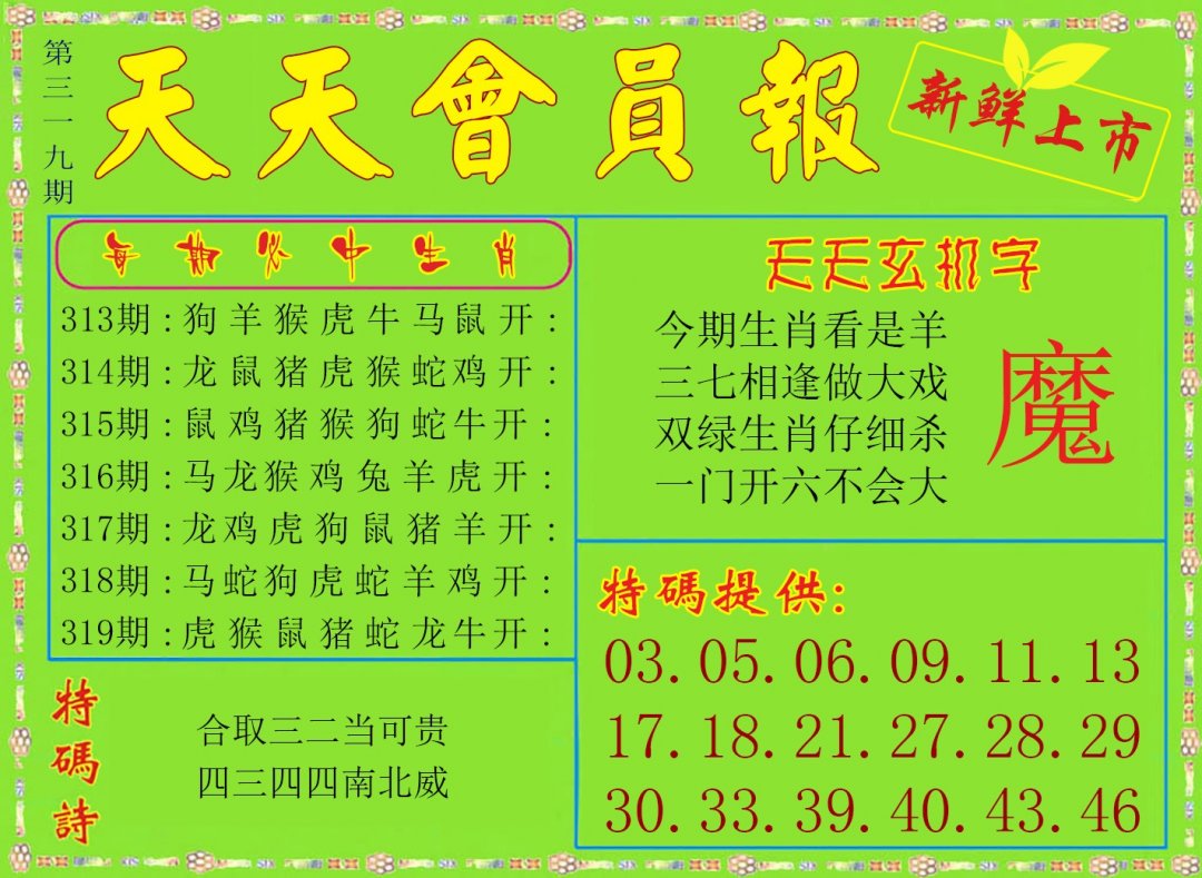 | 319期:【天肖】开?00 |