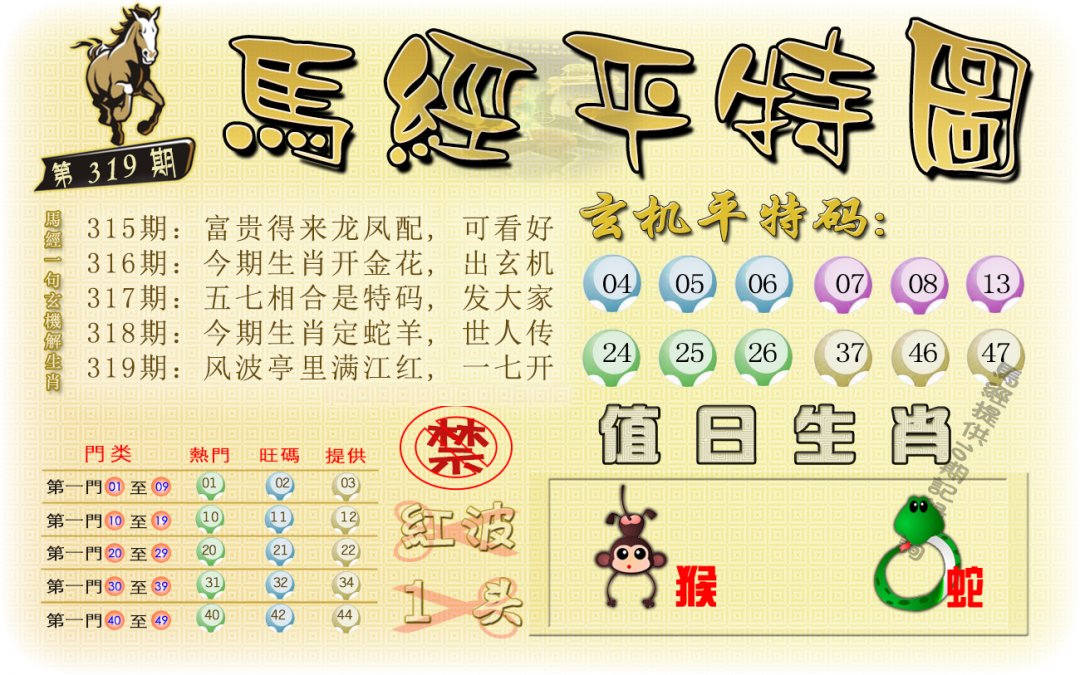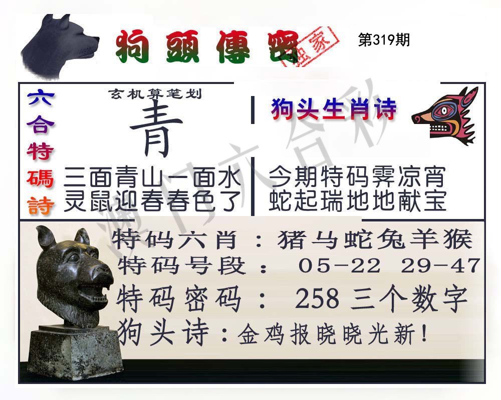| 319期 | 狗蛇猴 | 猪兔 | 猴 |