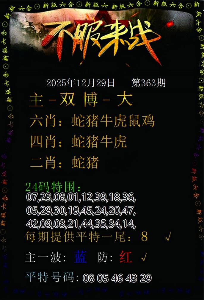 | 360期 | 龙牛鼠 | 兔狗 | 羊 |