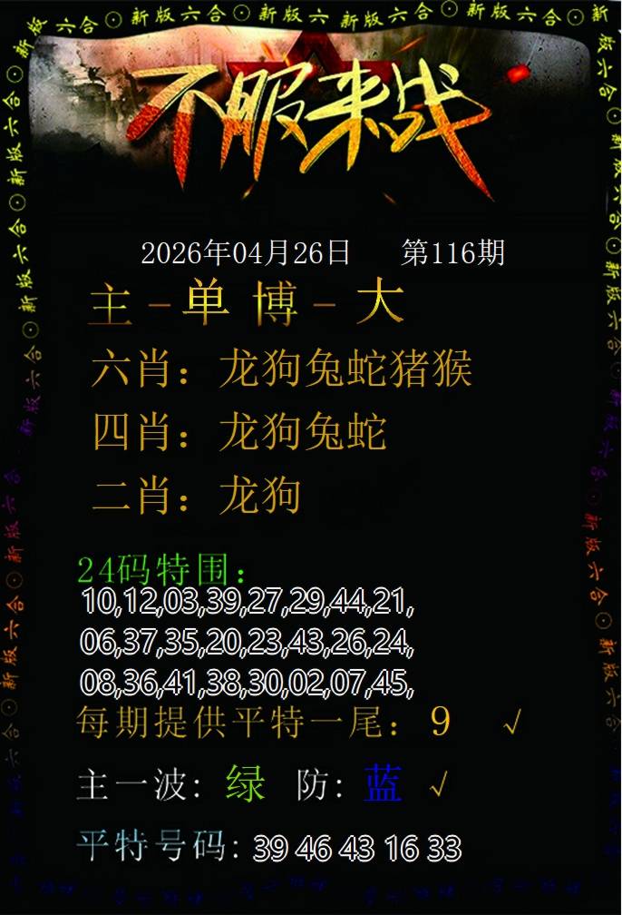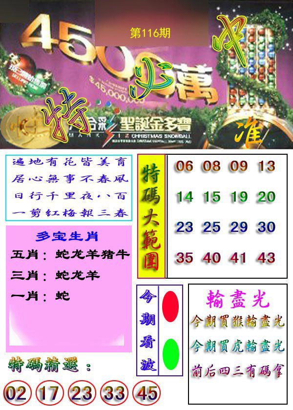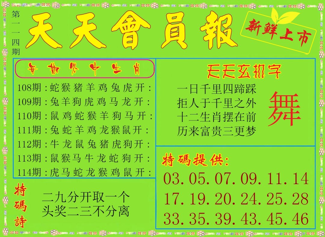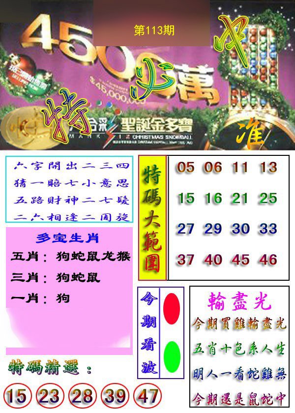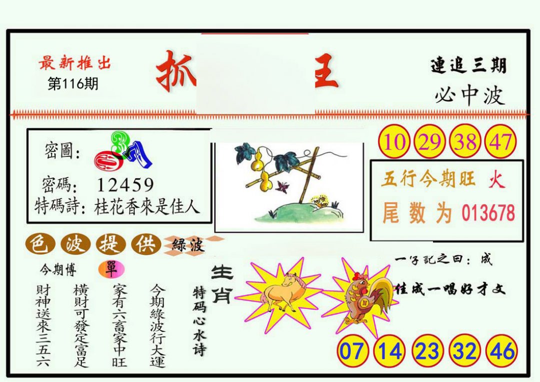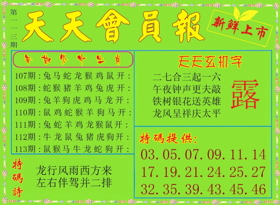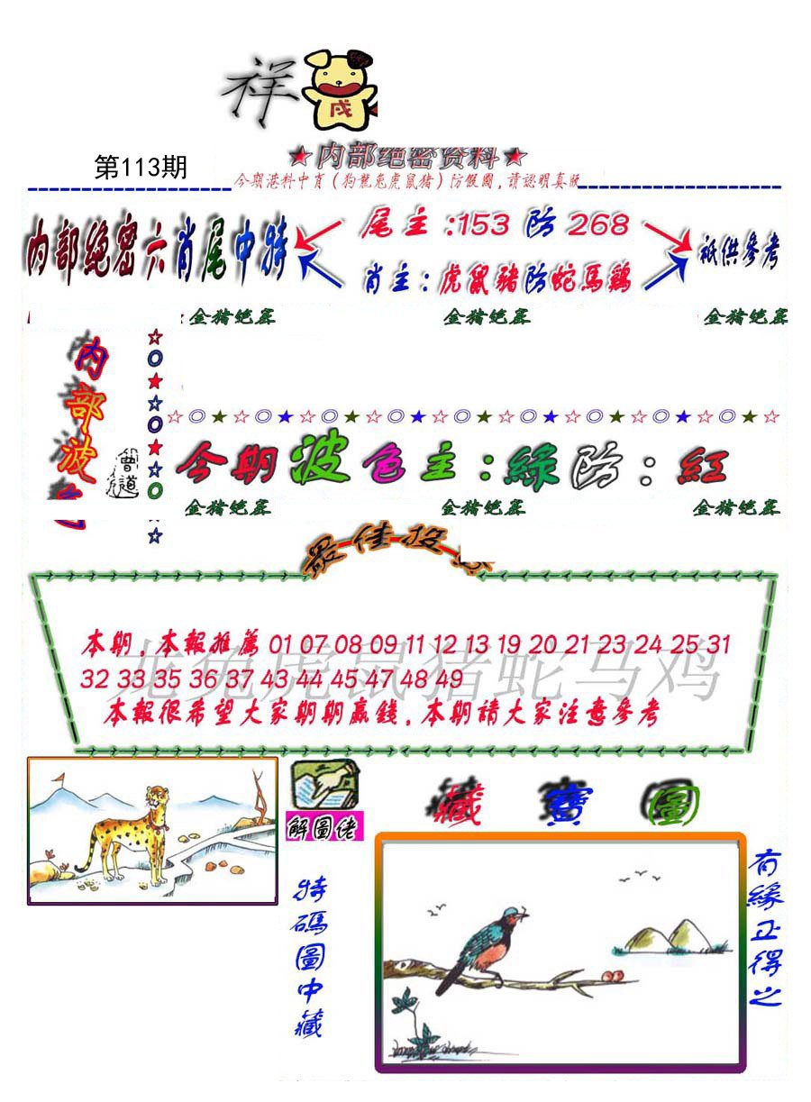 | 107期 | 龙蛇狗 | 鼠虎 | 羊 |