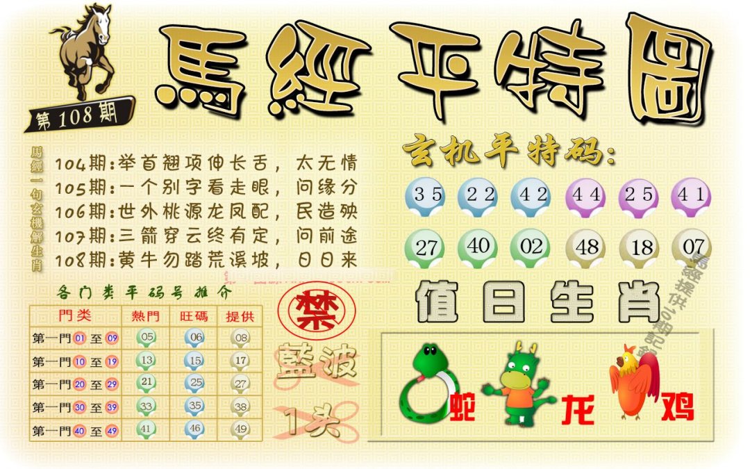 | 105期 | 猴鸡鼠 | 蛇马 | 蛇 |