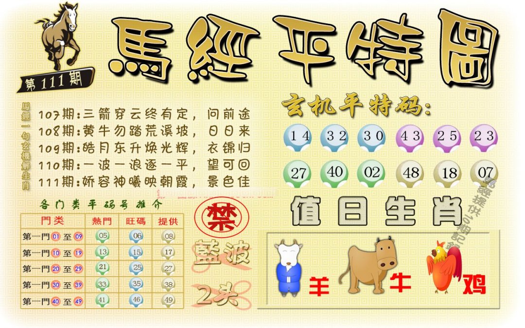 | 111期 | 兔猴鸡 | 牛羊 | 鸡 |
