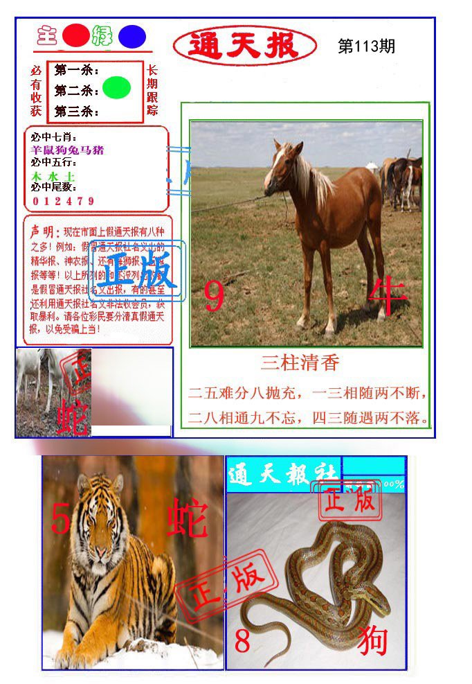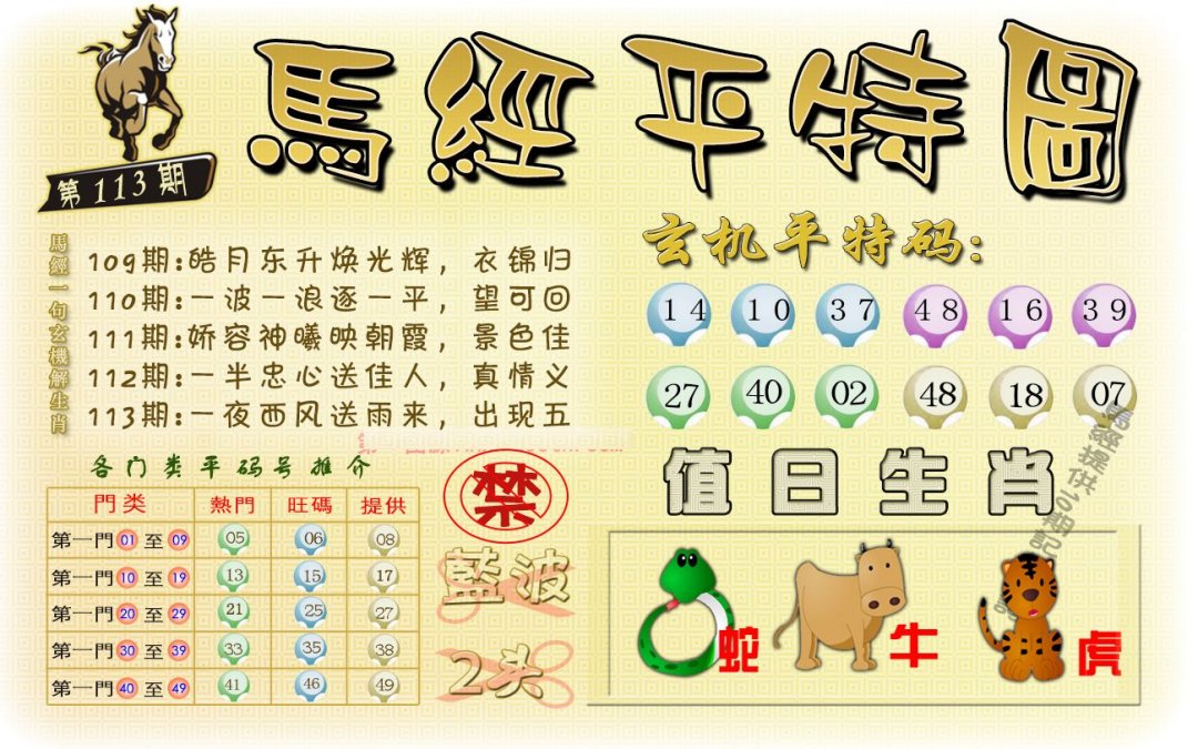 | 106期 | 牛虎马 | 牛狗 | 狗 |