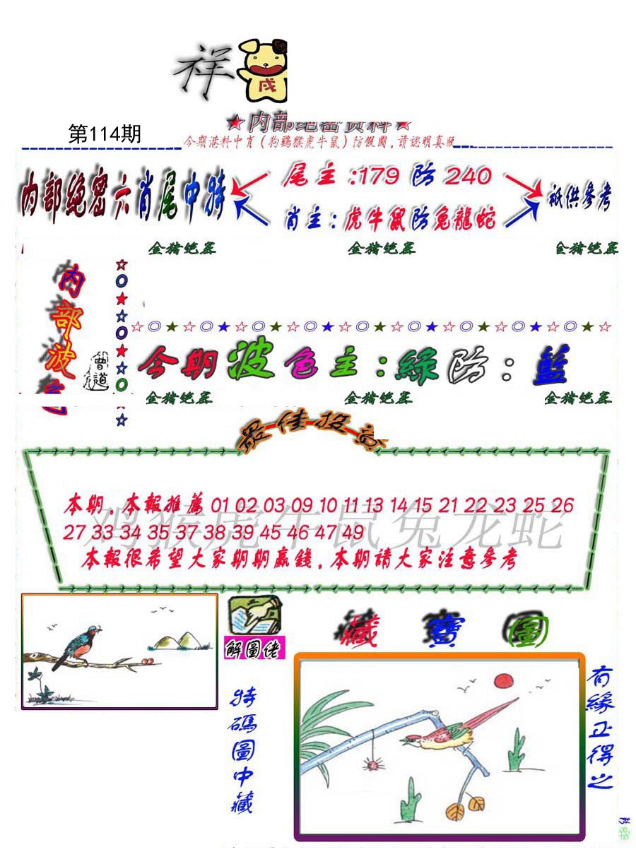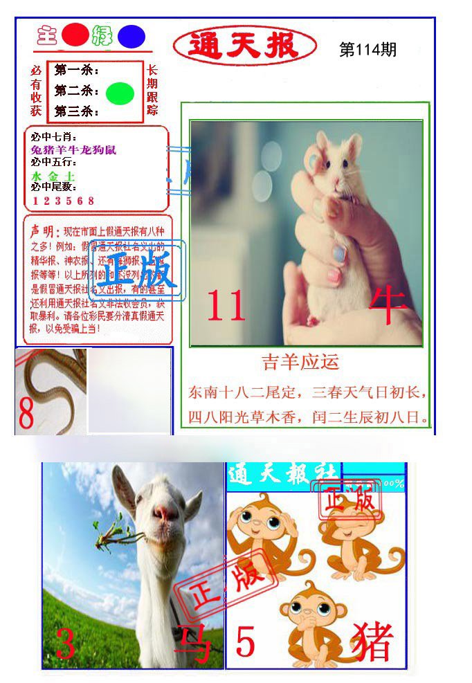 | 099期 | 鸡虎鼠 | 牛羊 | 兔 |