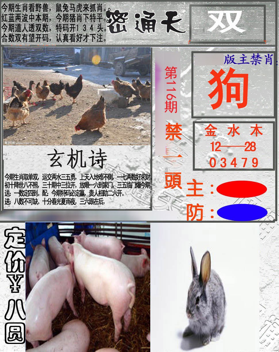 | 101期家野【家禽+蛇狗】开兔16错 |