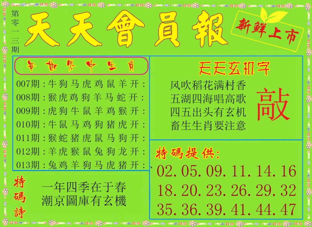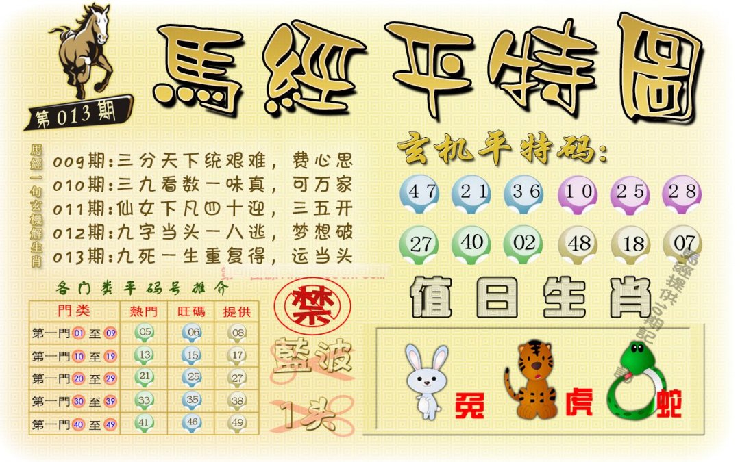 | 013期 | 鼠牛虎 | 羊虎 | 兔 |