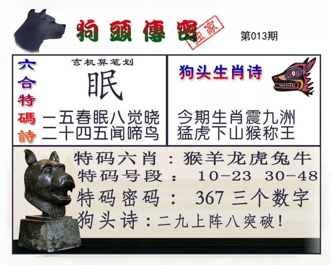 | 011期:【天肖】开狗08 |