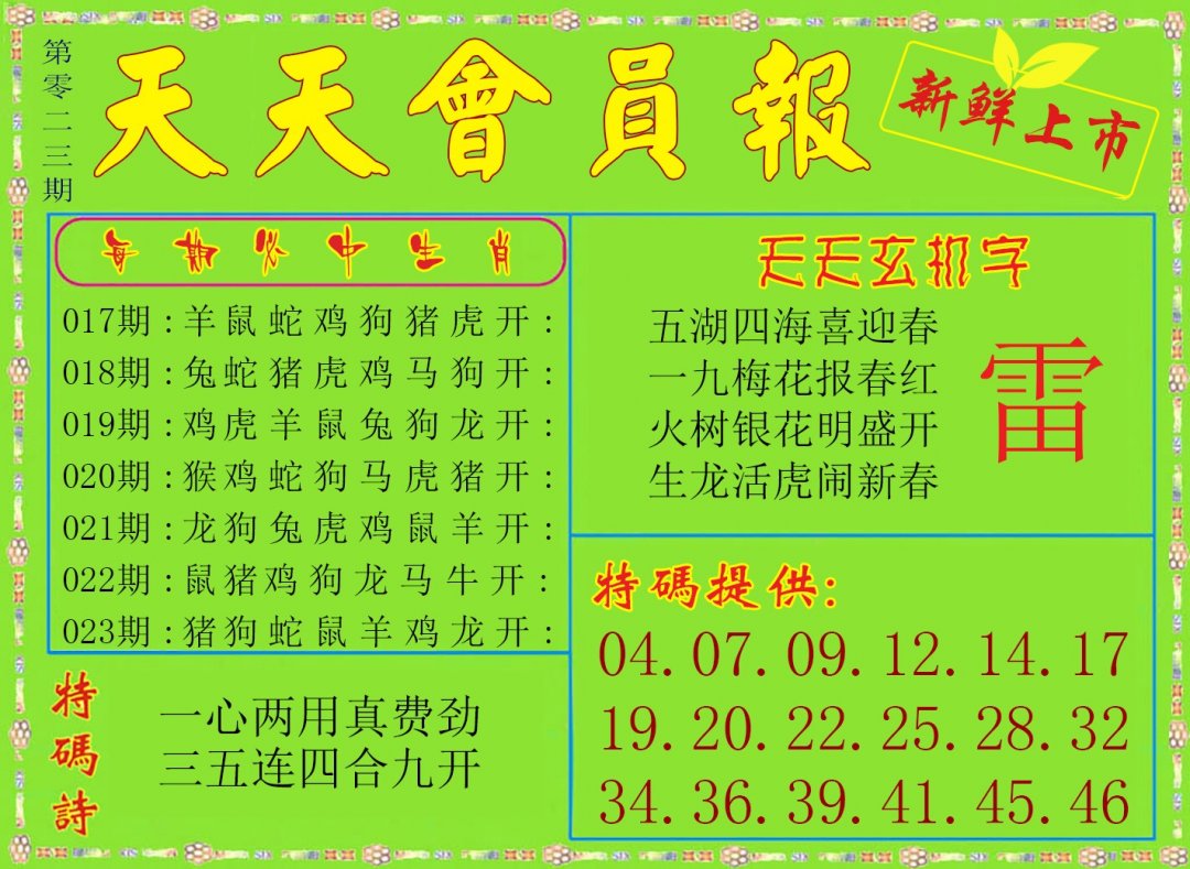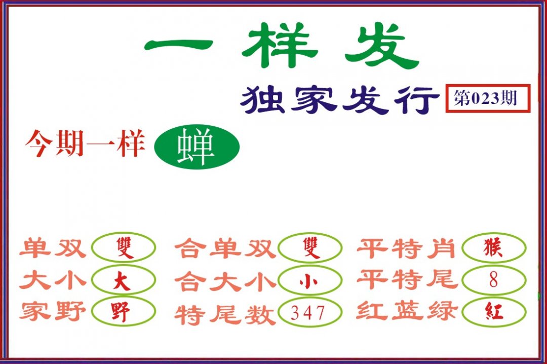 | 023期 | 猴虎羊 | 羊鸡 | 兔 |