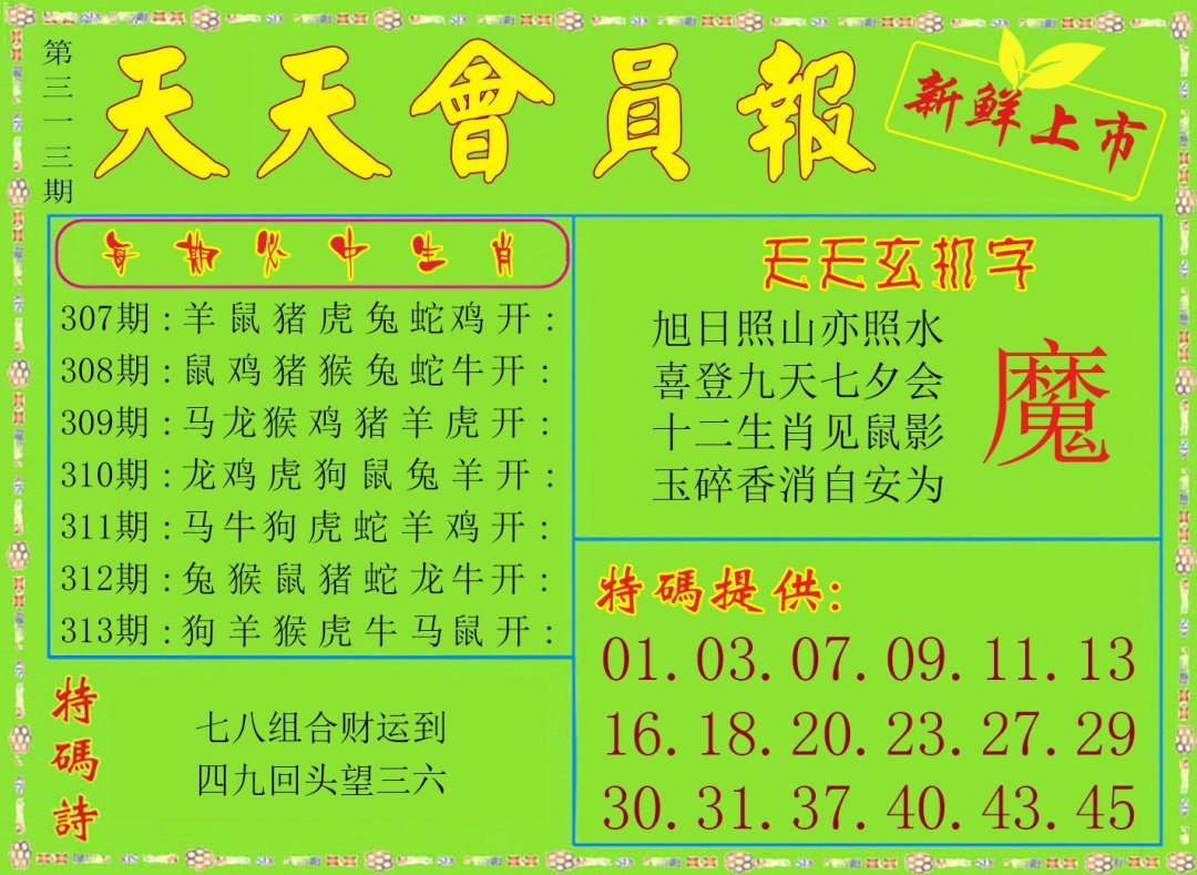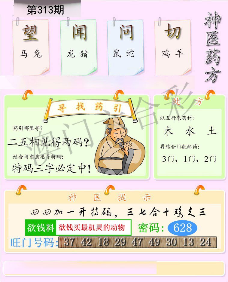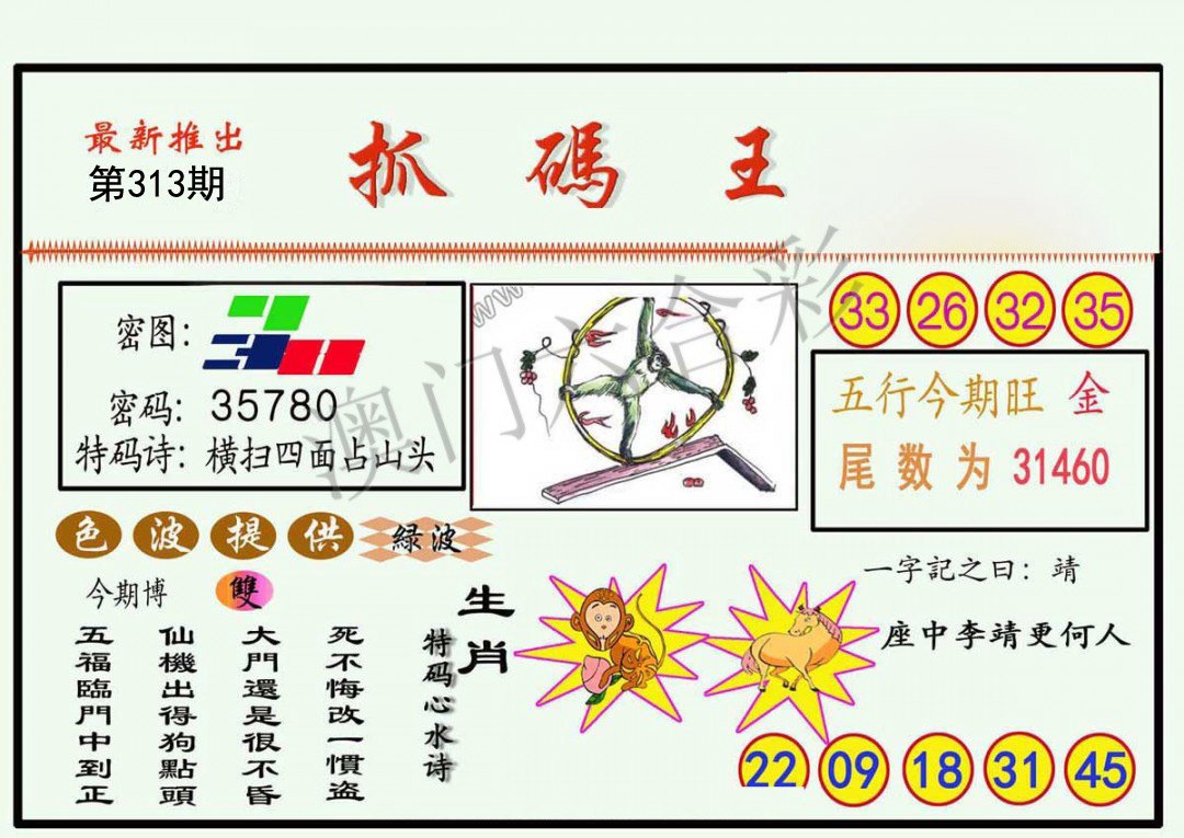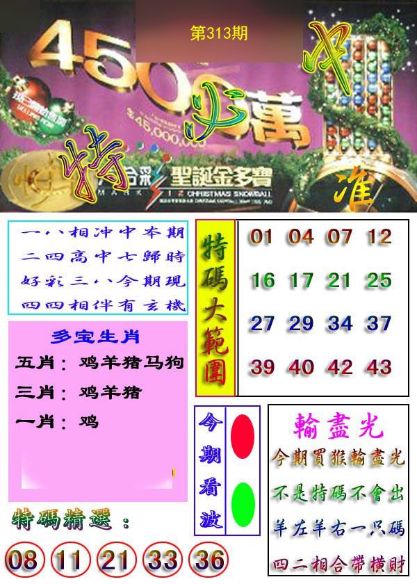 | 312期 | 马羊猴 | 猪蛇 | 鸡 |