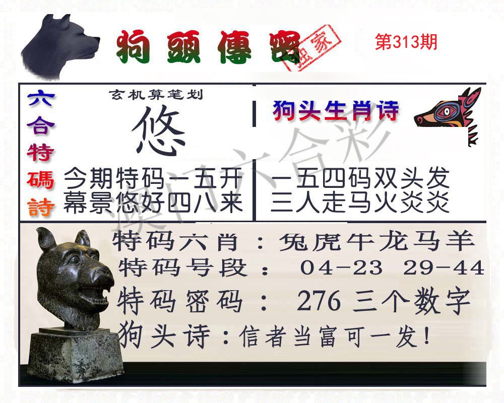 | 310期 | 牛马龙 | 狗兔 | 蛇 |