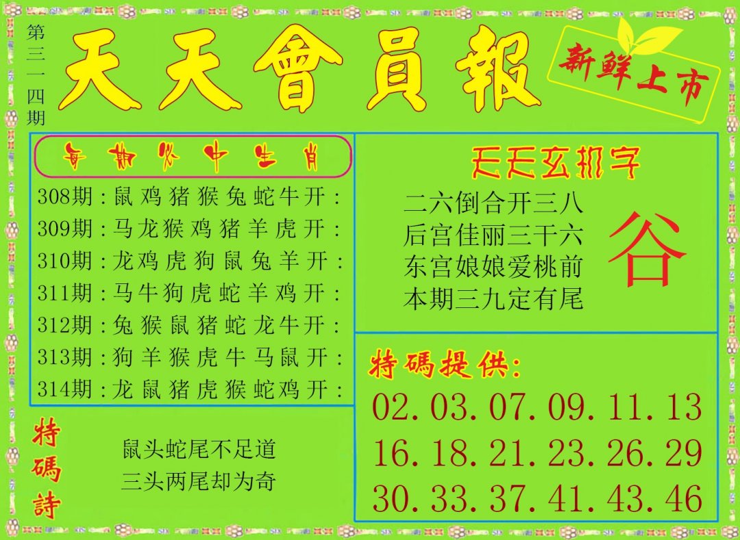 | 314期 | 蛇龙牛 | 兔龙 | 羊 |