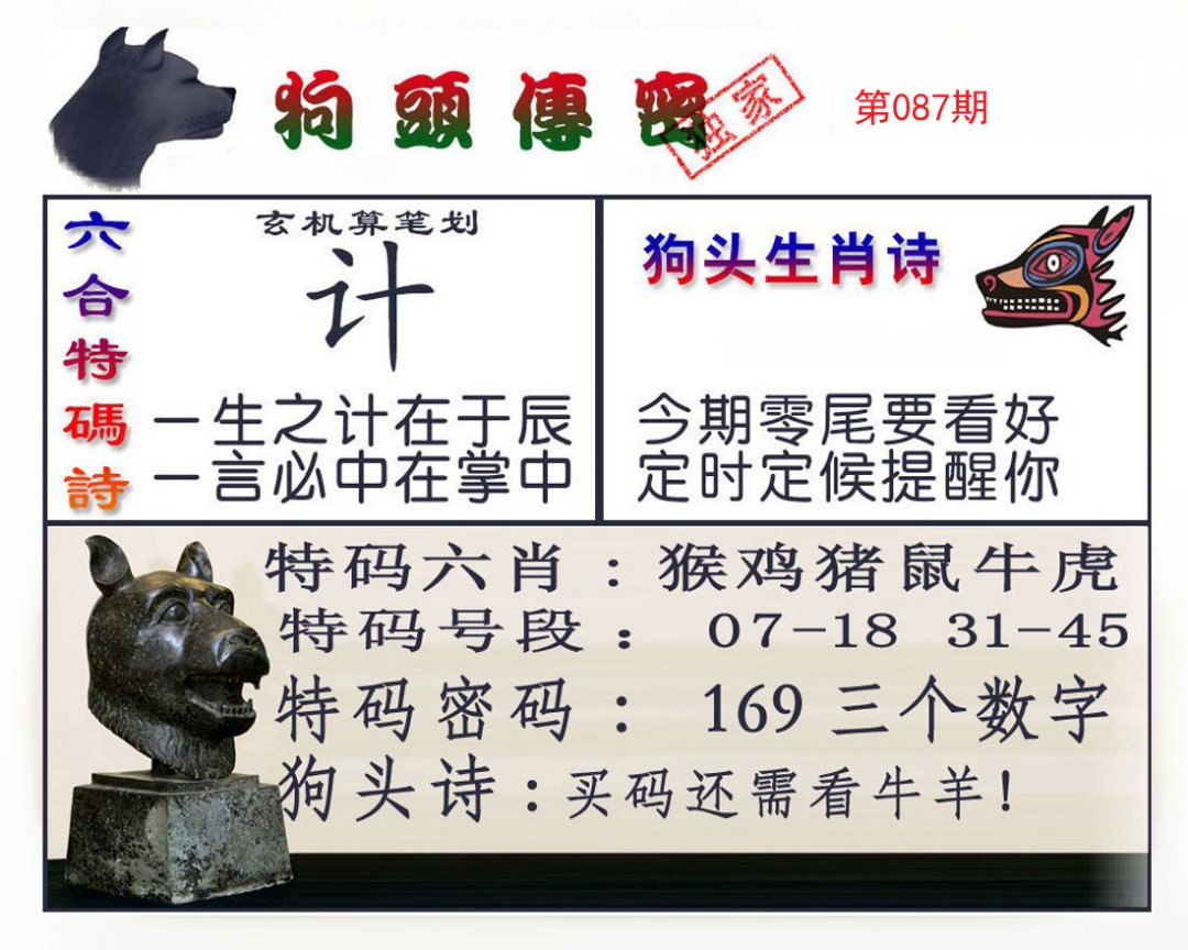 | 087期 | 鼠虎牛 | 鸡羊 | 猴 |