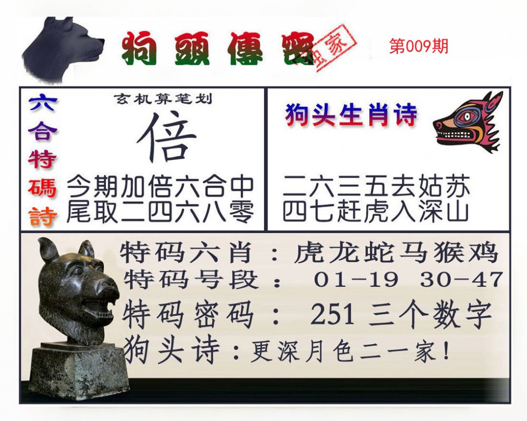| 009期 | 狗鼠牛 | 兔狗 | 马 |