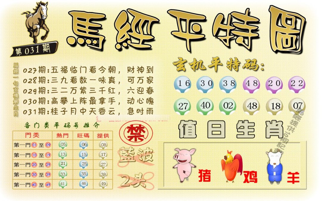| 031期 | 鸡虎牛 | 羊猪 | 猴 |