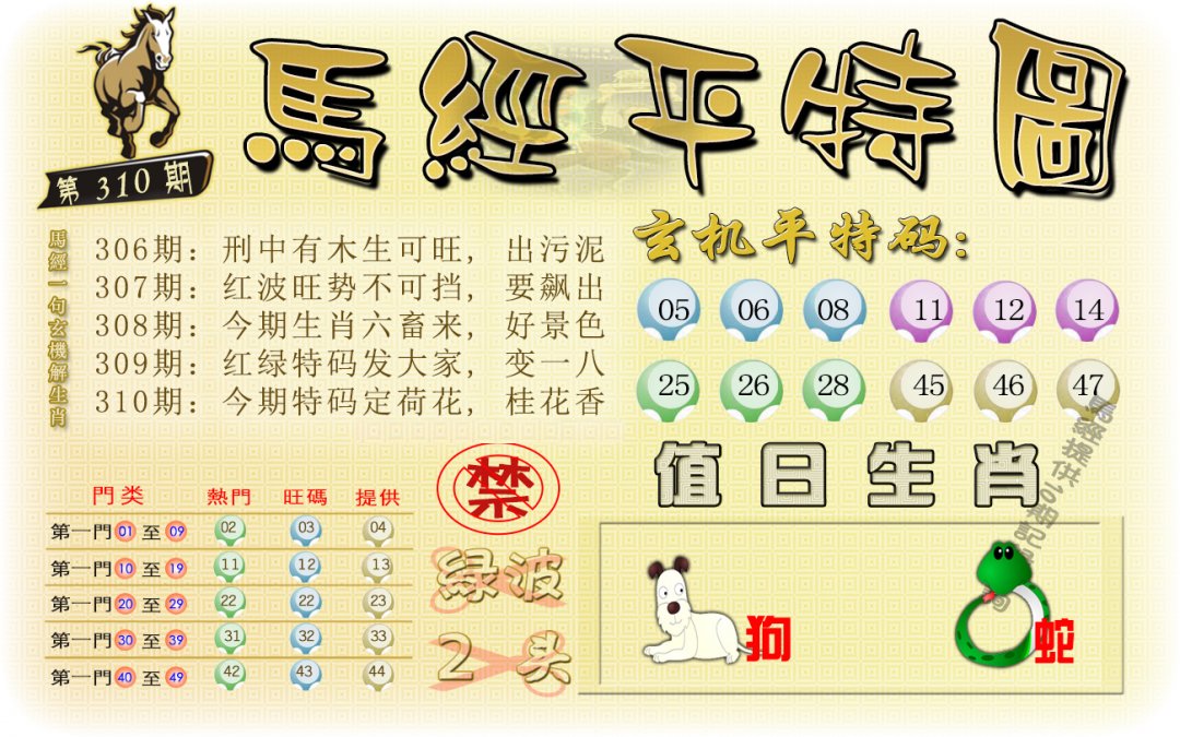 | 310期 | 牛马龙 | 狗兔 | 蛇 |