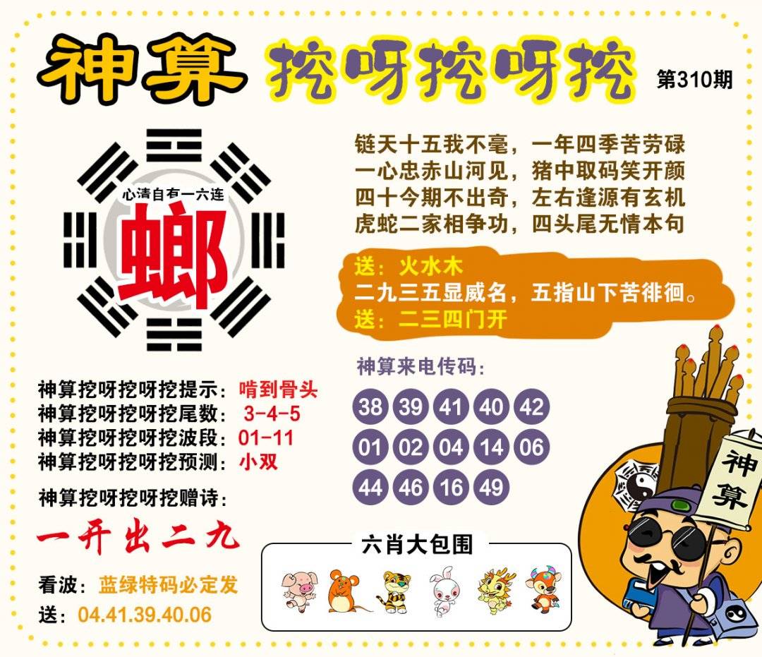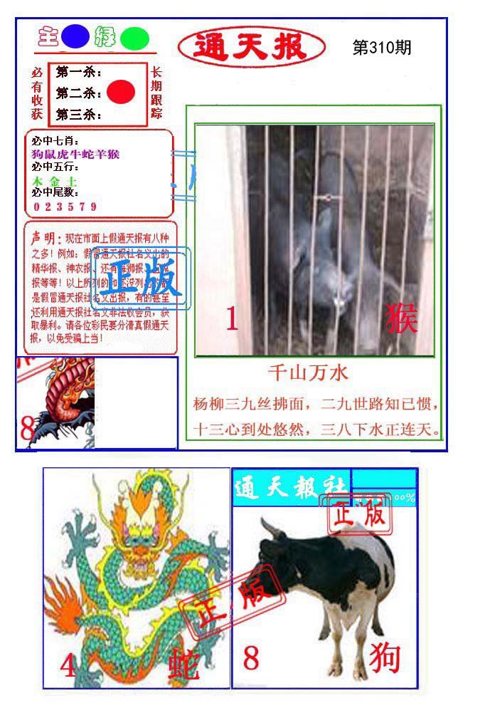 | 310期 | 牛马龙 | 狗兔 | 蛇 |