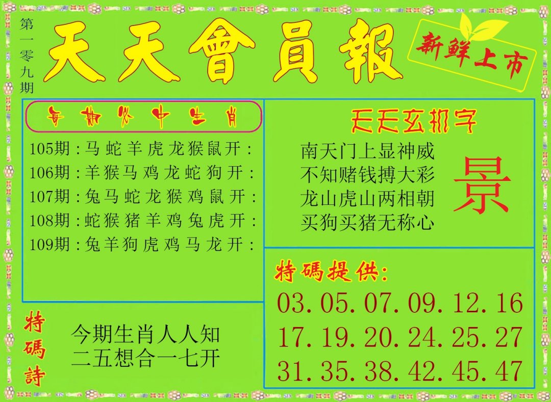 | 107期 | 龙蛇狗 | 鼠虎 | 羊 |