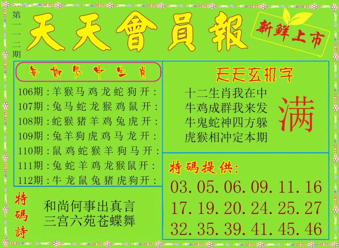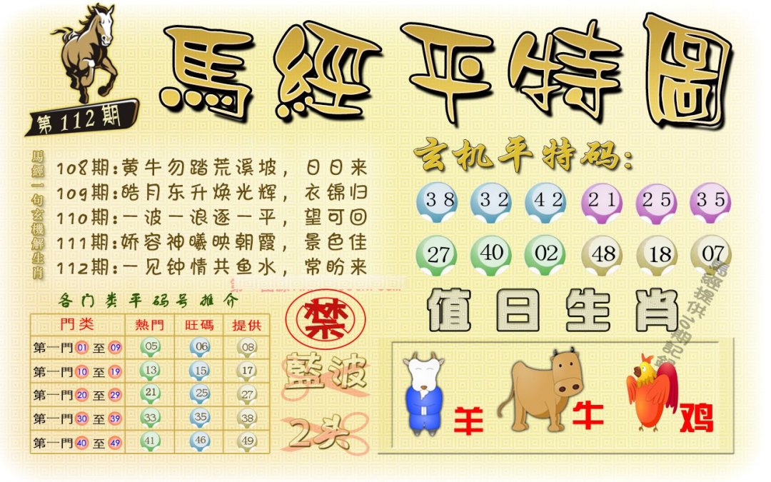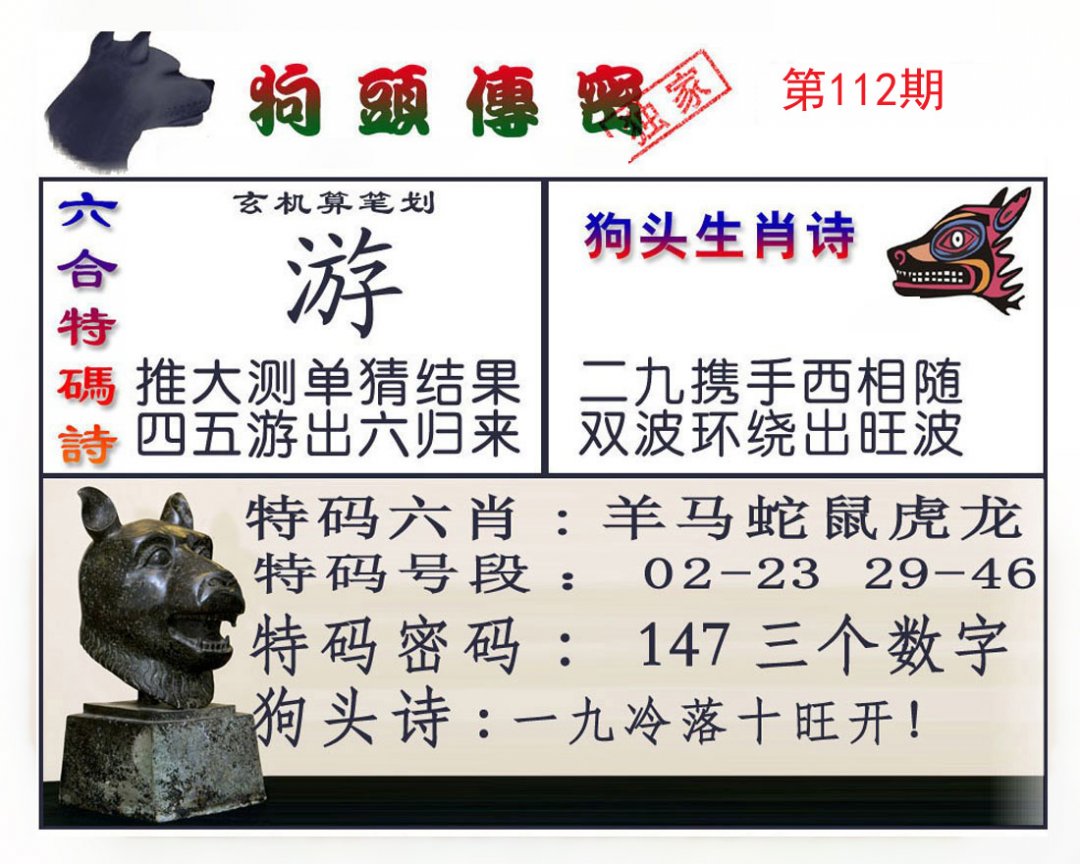 | 112期 | 牛龙虎 | 狗马 | 鼠 |