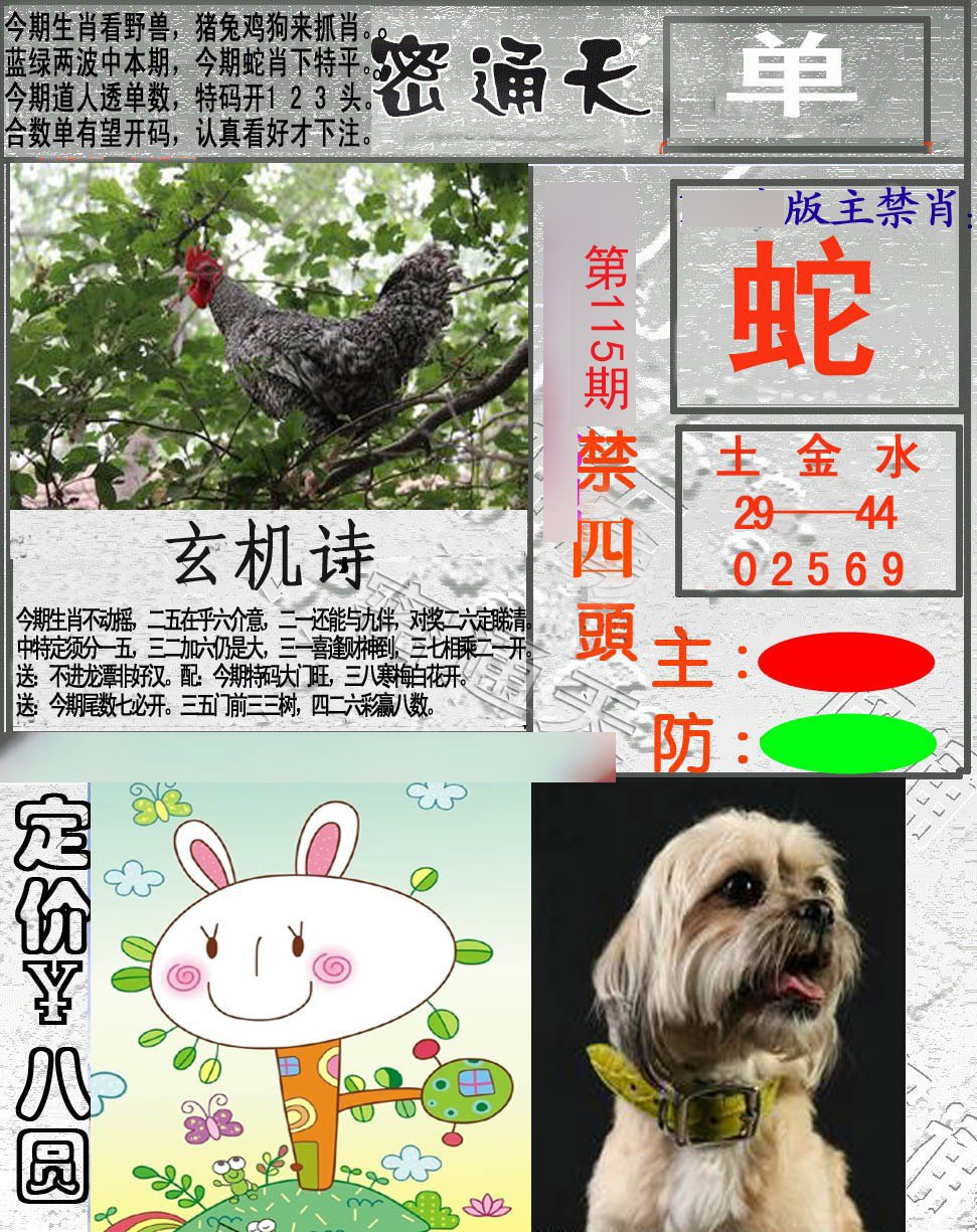 | 114期 | 蛇鸡狗 | 兔牛 | 鸡 |