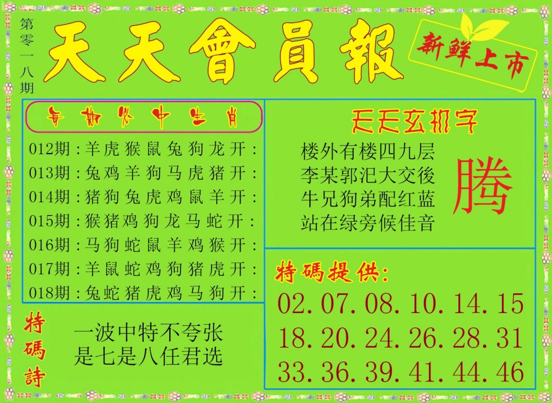 | 018期 | 羊鼠龙 | 猪猴 | 鸡 |
