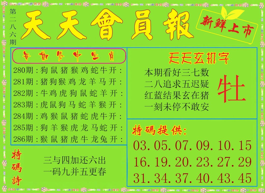 286期 | 龙鼠马 | 蛇羊 | 马 |