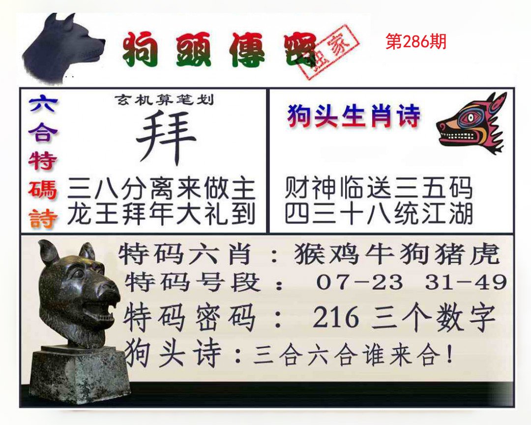 276期 | 鸡龙羊 | 蛇鸡 | 狗 |
