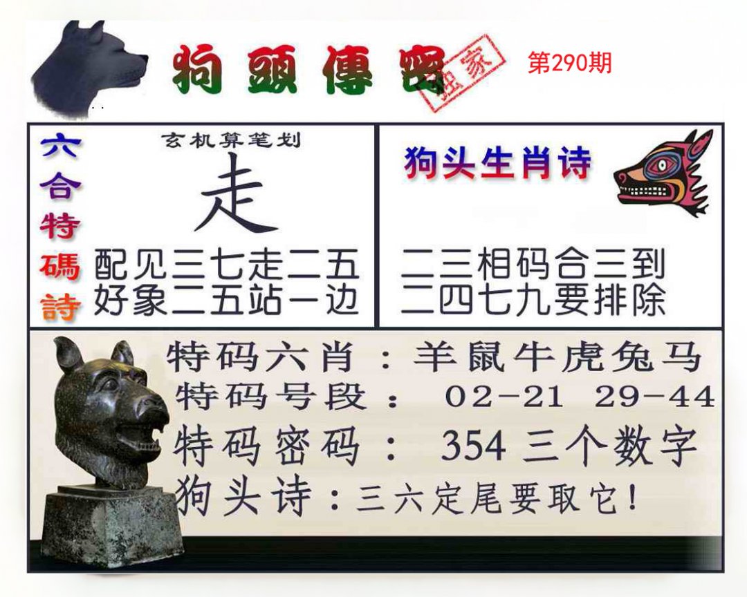 290期 | 鸡龙虎 | 狗羊 | 羊 |