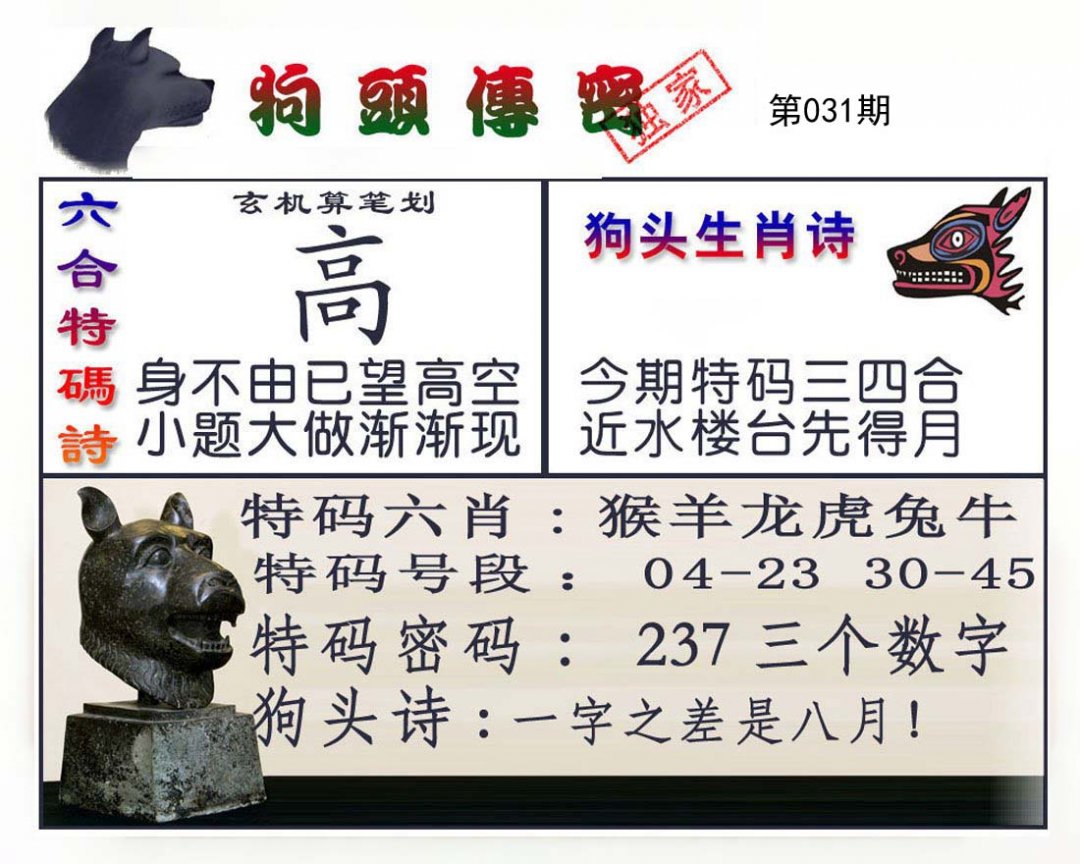 | 031期 | 鸡虎牛 | 羊猪 | 猴 |