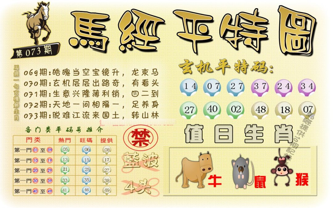 | 073期 | 羊蛇猴 | 蛇兔 | 马 |