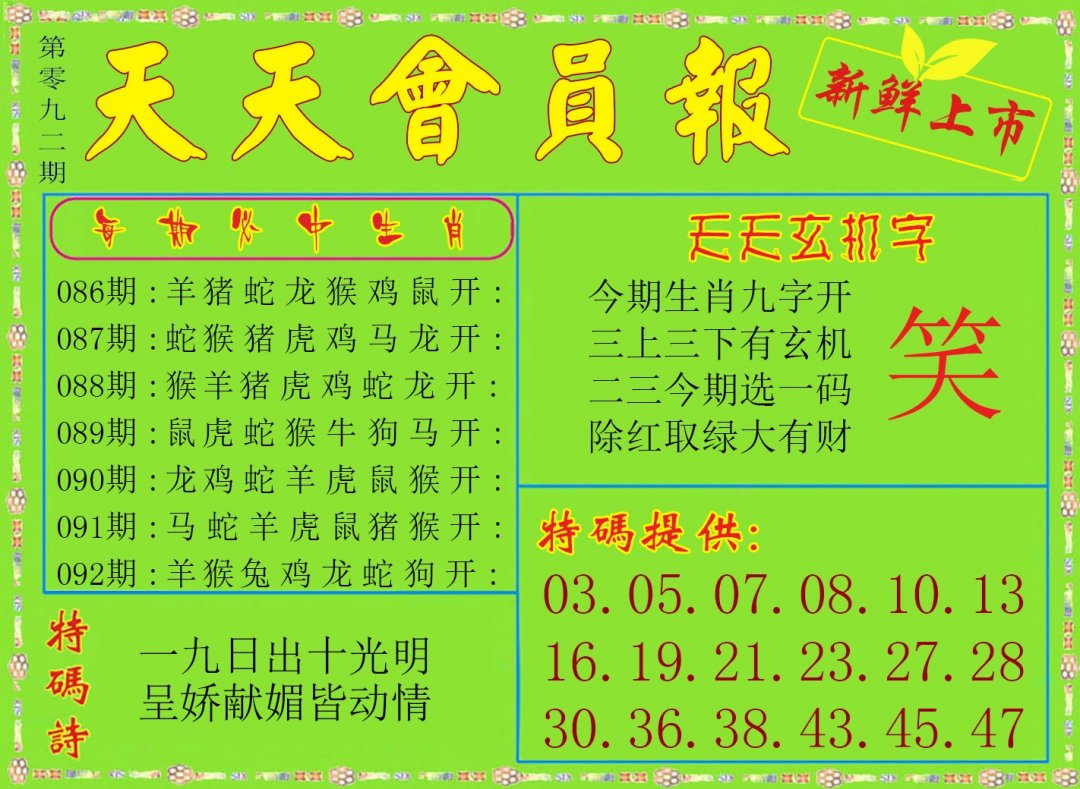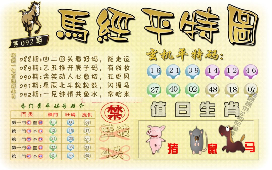 | 092期 | 兔蛇狗 | 鸡猪 | 牛 |
