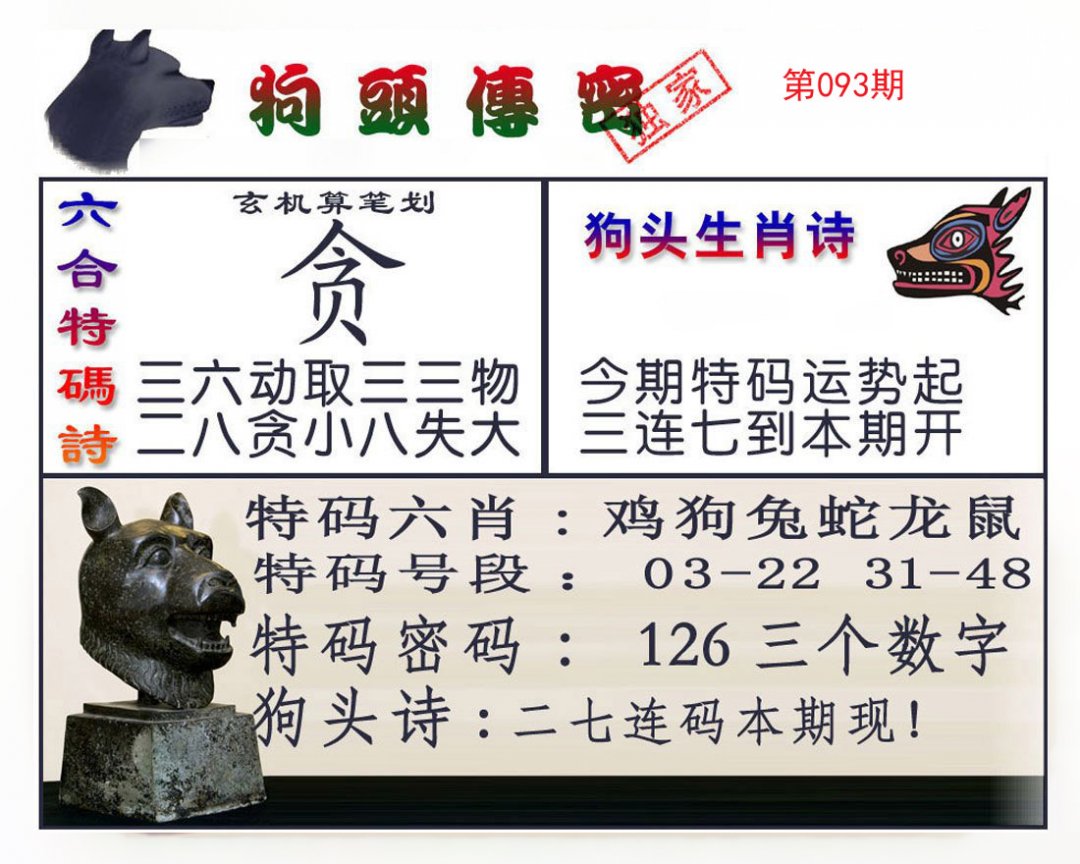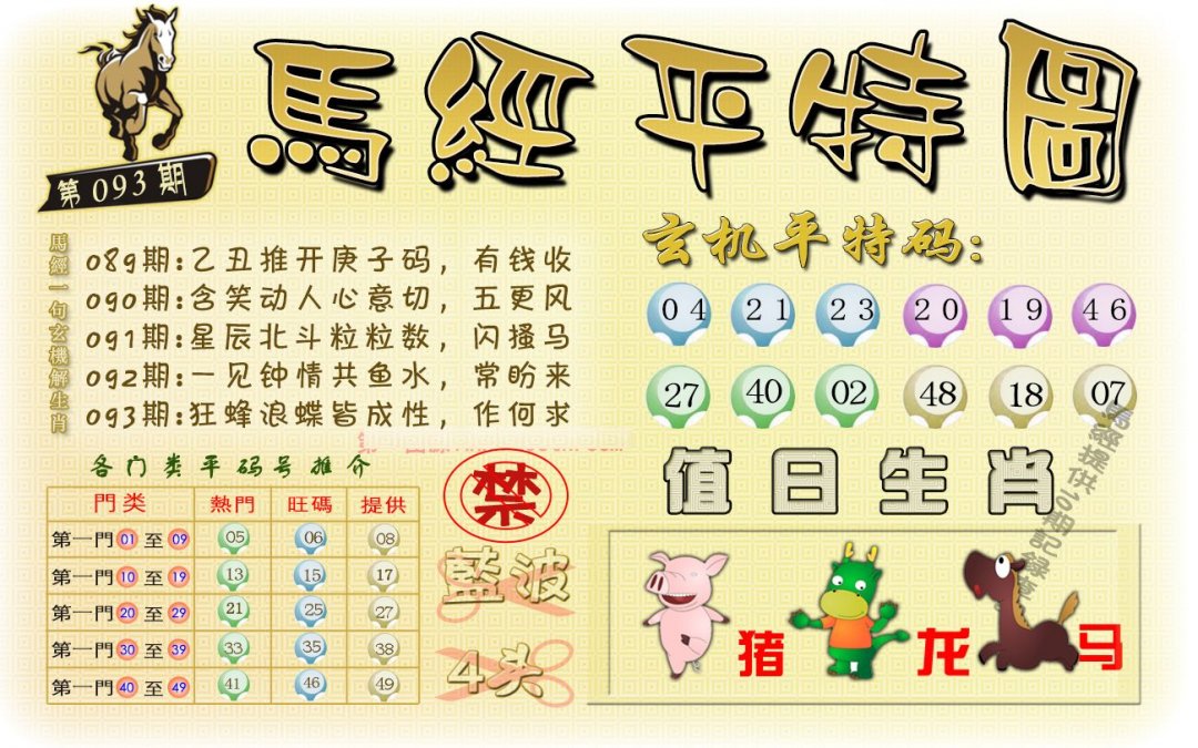 | 093期 | 龙鸡兔 | 猪猴 | 蛇 |
