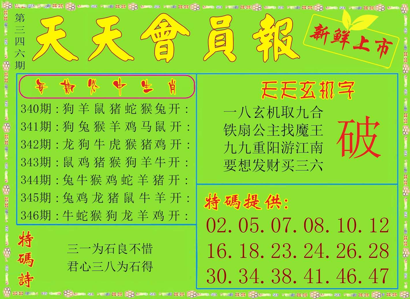 | 346期 | 兔蛇鼠 | 蛇龙 | 猴 |